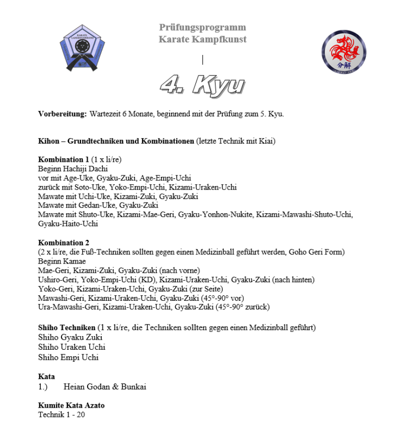 Prüfungsprogramm 4. Kyu